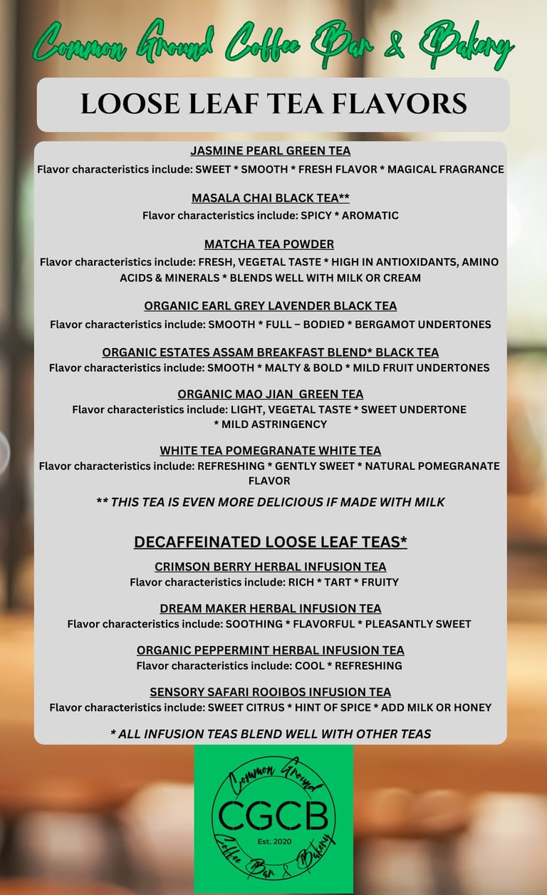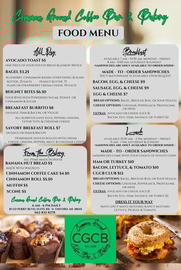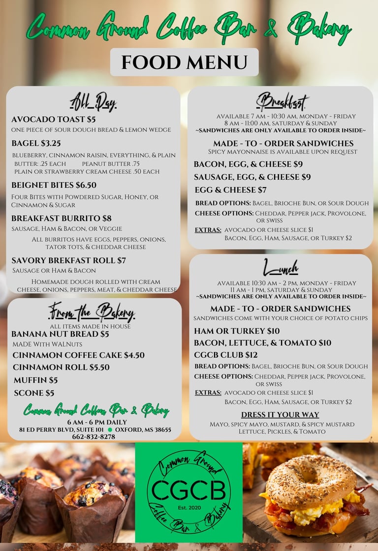 Browse the menu at Common Ground Coffee Bar & Bakery and find your perfect coffee and pastry pairing